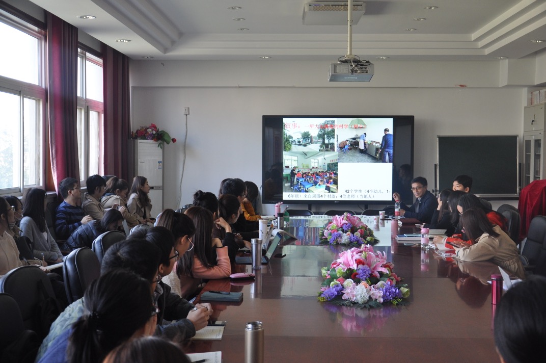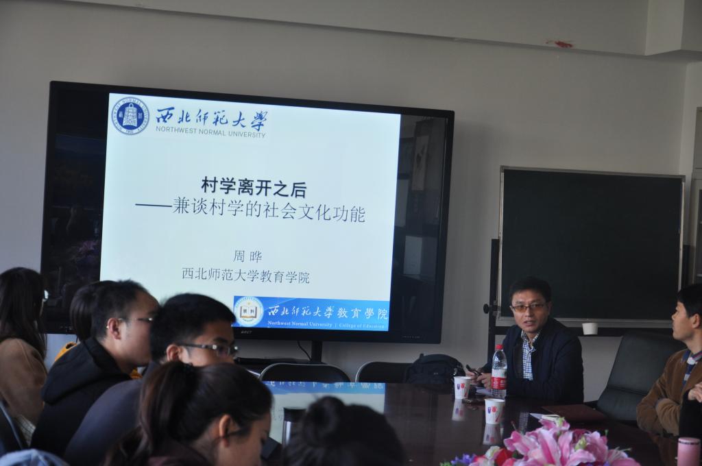 2018年10月24日上午10:00,西北师范大学周晔教授应邀到公司开展了一场题为《村学离开之后——兼谈村学的社会文化功能》的讲座。此次讲座在北智楼533会议室举行,由公司钟志勇教授主持,公司部分教师、博士研究生、硕士研究生参加了讲座。