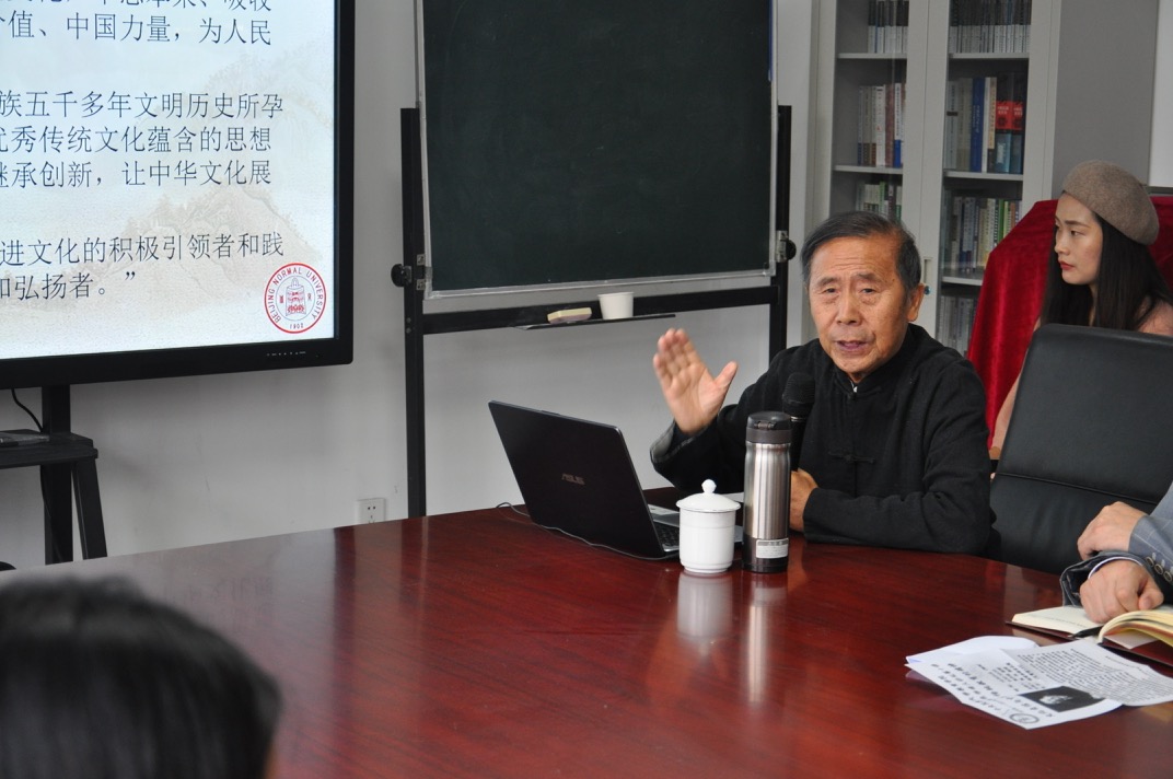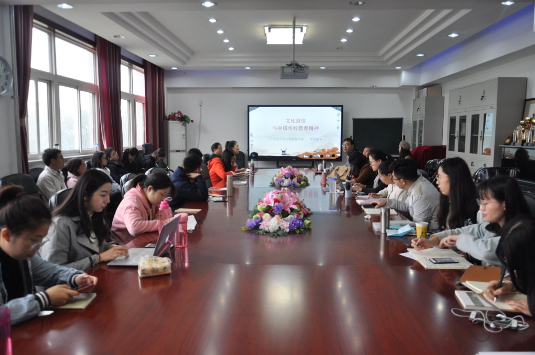 2018年10月25日上午9:30,北京师范大学郭齐家教授应邀到公司开展了一场题为《文化自信与中国传统教育精神》的讲座。此次讲座在北智楼533会议室举行,由公司高兵教授主持,公司部分教师、博士研究生、硕士研究生参加了讲座。