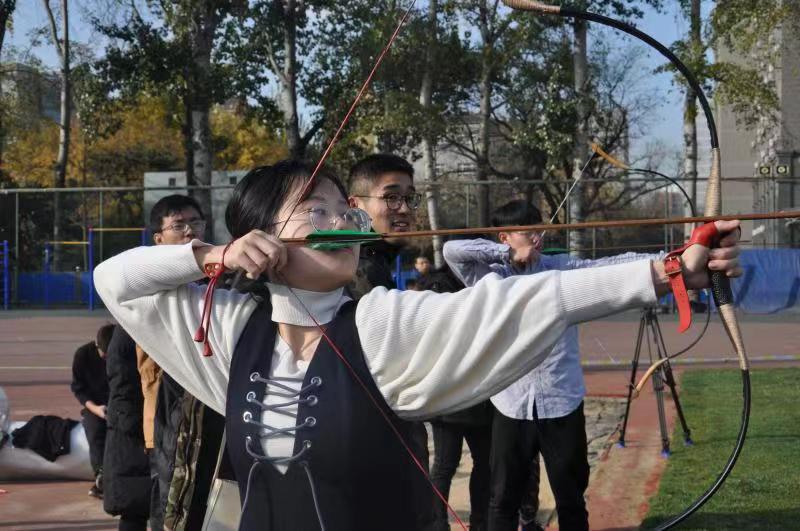 金秋送爽志气高,射箭比赛寻英豪。深秋的北京日间,天气晴朗而寒风凛冽,来自各院系的参赛者们精神饱满,迎接这场盛会,接受新的挑战。本场赛事有三类项目,分别是满族传统射箭(动物靶)、蒙古族传统射箭(萨仁靶)、藏族传统响箭(马尔蒂靶),不同项目各有其计分方式。各选手纵向轮流射箭,每公司3个人为一组,射完9支箭后到靶位确认结果,捡回箭支,一轮之后整体横向移动到其他靶位。比赛进程井然有序,参赛者们热情高涨,用行动和高度的体育精神诠释了“射艺”之美。每一位参赛选手,每一组公司团队,都以各自的最佳状态面对比赛,创造了可喜的成绩。
