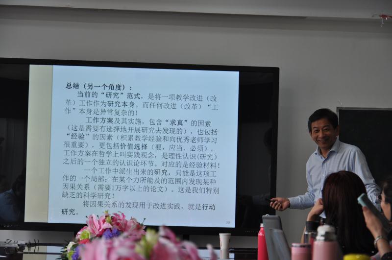吴重涵教授以一幅漫画引出此次讲座的核心:教育实证研究需要基于证据。此次讲座主要包括四个部分:一、经验材料与实证研究:教育事实的总结和提炼,分为经验材料和事实判断研究,前者包含价值判断、经验、经过验证的事实判断,以中小学教育衔接问题为例进行说明。二、问题研究与实证研究:问题研究有三种,思辨研究、工作研究和实证研究。实证研究是其中的一种。为了减少歧义,便于理解,以1950年代公私合营、农业合作化、大炼钢铁等事实为例,当时的情况是中央对实际情况产生重大争议和判断失误。三、研究综述与实证研究:实证研究的学理,实证研究是欧洲文艺复兴时期发明的,以成系统观察和验证为基础的“新科学方法”。其区别于一般的工作调研,特征在于有没有学理基础,有什么样的学理基础。四、伪原创“洗稿”与实证研究:介绍伪原创“洗稿”与实证研究来说明实证研究成果的原创性和累积性。最后,吴教授就怎样做教育研究,提出了一些个人的想法。他建议教师们和同学们结合不同的学科视角,如经济学、社会学、心理学等进行教育研究。