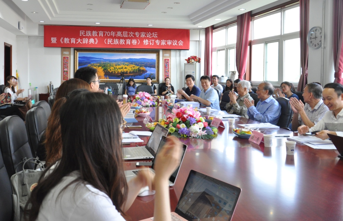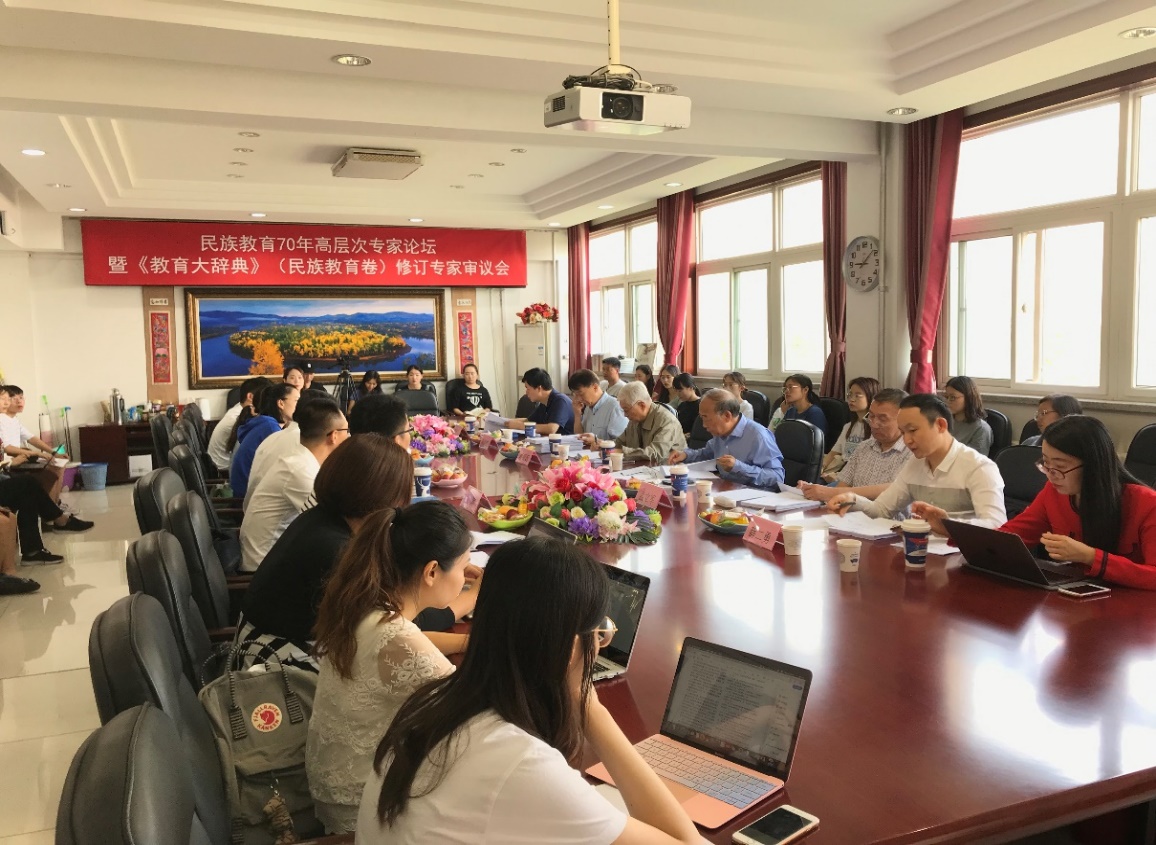 10月3日上午,由谈球吧官方网站苏德教授主持的民族教育70年高层次专家论坛暨《教育大辞典》(民族教育卷)修订专家审议会在谈球吧官方网站533会议室召开。会议邀请了中国教育学会名誉会长、国家教育咨询委员会委员、北京师范大学资深教授顾明远先生、浙江大学资深教授、中外教育现代化研究所所长田正平教授、北京大学陈洪捷教授、教育部职业技术教育中心研究所副所长曾天山教授、中南民族大学孟立军教授和北京师范大学、中国教育与社会发展研究院、教育部-青年学者薛二勇教授等来自全国教育学界各领域的资深专家 学者出席会议,并就《教育大辞典》(民族教育卷)的修订工作提出了相关指导与修改建议。