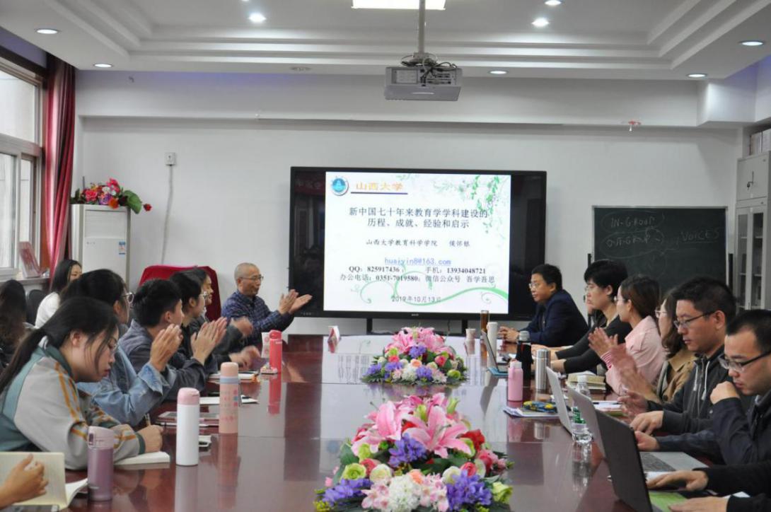 2019年10月13日上午10:00,山西大学侯怀银教授应邀到公司开展了一场题为《新中国七十年来教育学科团队建设的成就、经侯怀银验和启示》的讲座。此次讲座在北智楼533会议室举行,由公司常永才教授主持,公司部分教师、博士研究生、硕士研究生参加了讲座。