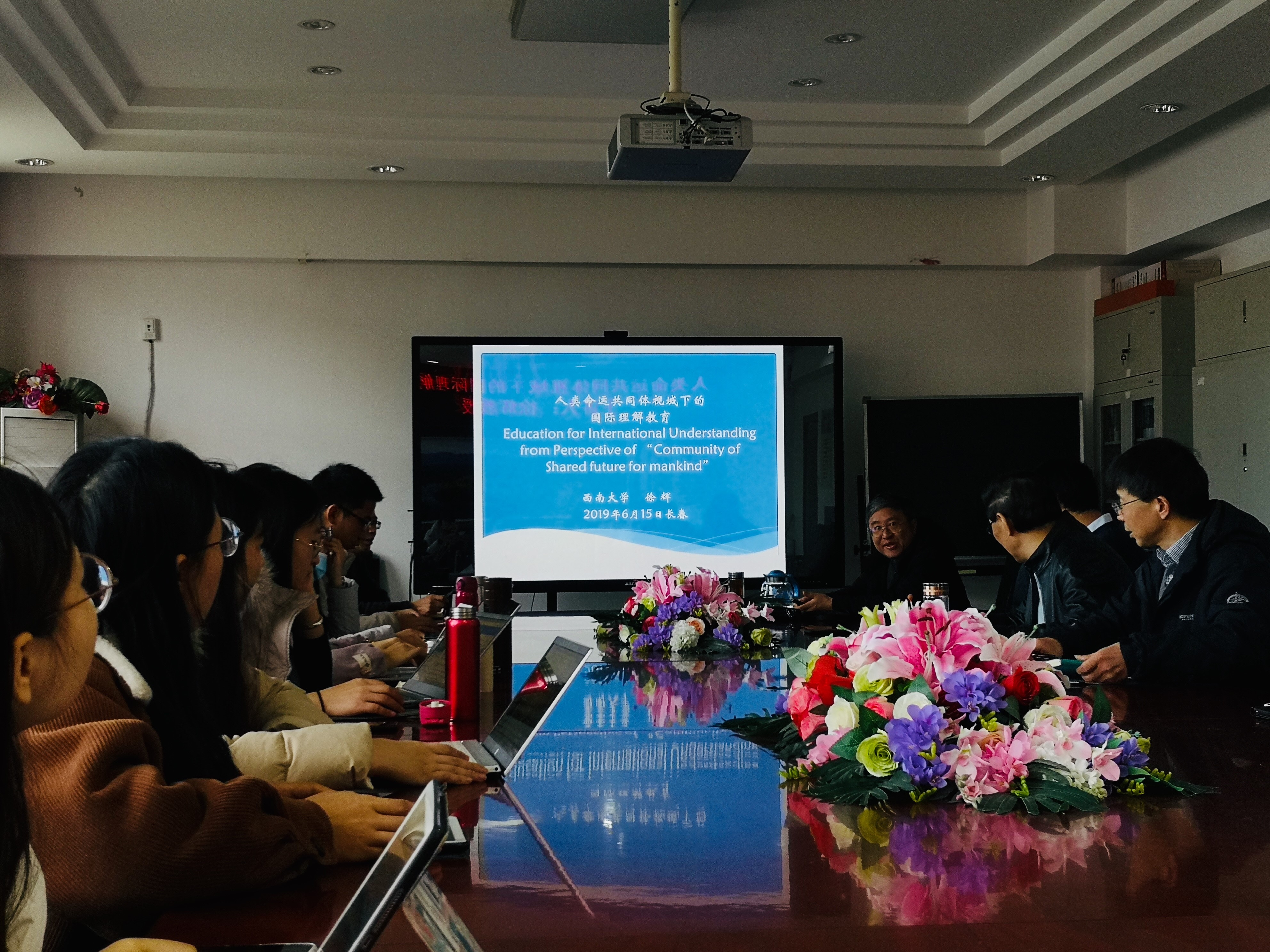 会议开始徐辉教授首先通过政策文件分析和经典文献爬梳阐释了习近平人类命运共同体思想的深刻内涵与时代价值。从国际理解教育的视角提议在座研究生力图体悟习近平总书记人类命运共同体思想是对中国优秀传统文化的创造性转化和创新性发展、是对马克思列宁主义的继承和创新、是对新中国外交成功经验的科学总结和理论提升,它为变革全球治理体系、为构建全球公平正义的新秩序提供了中国方案和中国智慧。其次,从夸美纽斯谈起并结合国内外政策与法规揭示出了国际理解教育的产生背景与发展历程。其三,结合自身教育实践对国际理解教育的思想与现实冲突做出了研判。例如,人类活动全球化发展要求和世界各地区教育之间发展不平衡的矛盾、国际理解教育制度的全球性与各国教育制度的差异性之间的矛盾等。再次,列举了部分国家开展国际理解教育的政策与举措。例如,美国和日本等发达国家高度重视国际理解教育,普遍将其纳入各国的战略发展之中,并提供政策、资金、组织甚至法律上的保障。从现实状况分析,国际理解教育,不论是作为一个研究领域,还是一系列研究领域,在欧美国家的大学本科教育、研究生教育和专业公司里牢牢地扎下了根。建议我国大力培养具有国际视野、全球眼光、通晓法律、胜任国际组织、多边外交、同时能够参与国际竞争的人才,作为制定我国教育政策的出发点与落脚点。最后,通过北京、上海、江苏等地国际教育实施案例讲述了我国开展国际理解教育的探索与实践策略,透视出我国对国际理解教育关注由感性认识转变为理性实践。例如,构建出了国际理解教育实践策略包括开展国际理解教育的原则和国际理解教育的目标。