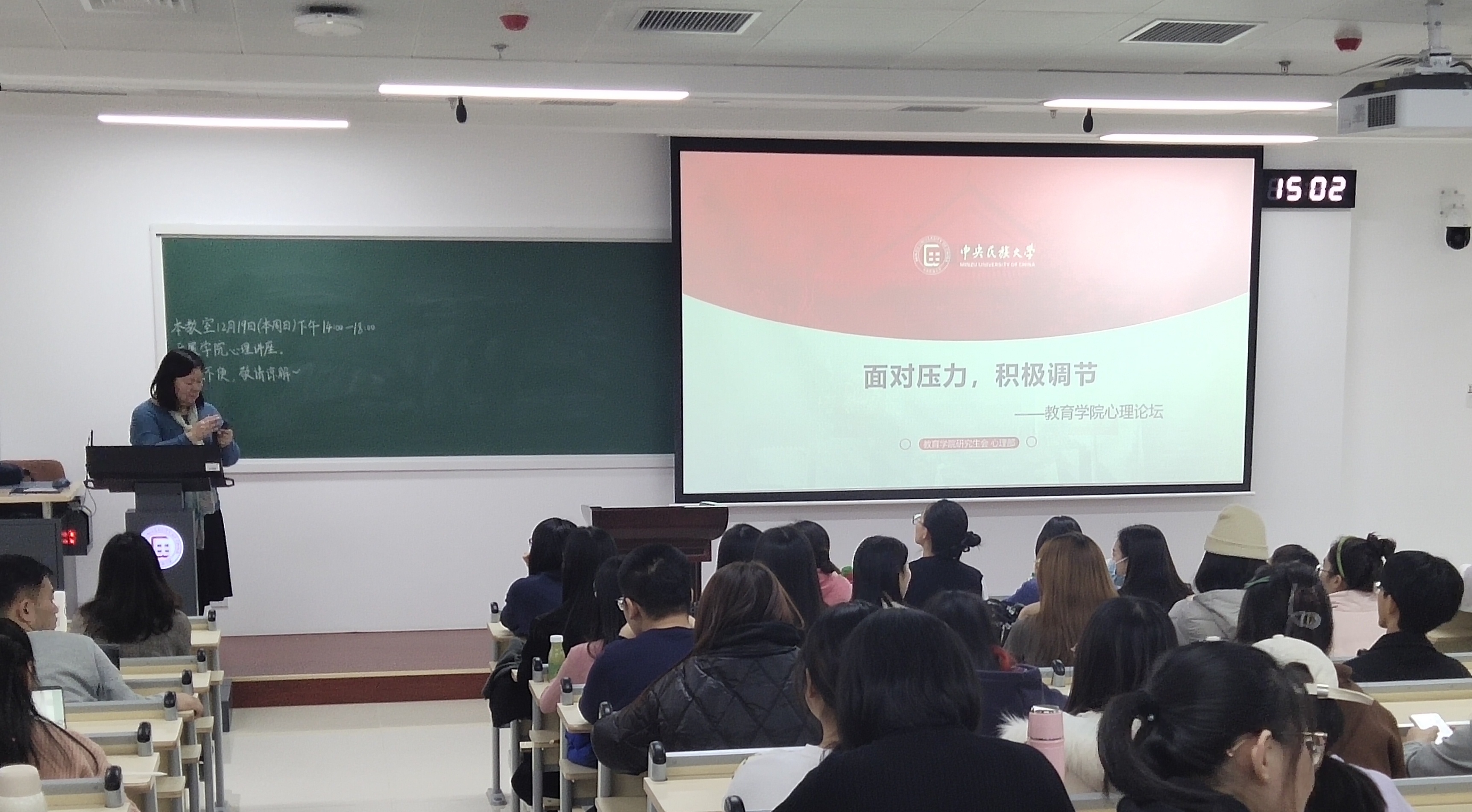 陆老师通过幽默风趣的例子,不仅从专业的角度讲解了同学们在面对考试时可能产生的各种与焦虑相关的心理现象,还为大家提供了很多能有效调节焦虑、应对压力的方法,这对我们积极应对学业压力有着十分重要的意义。