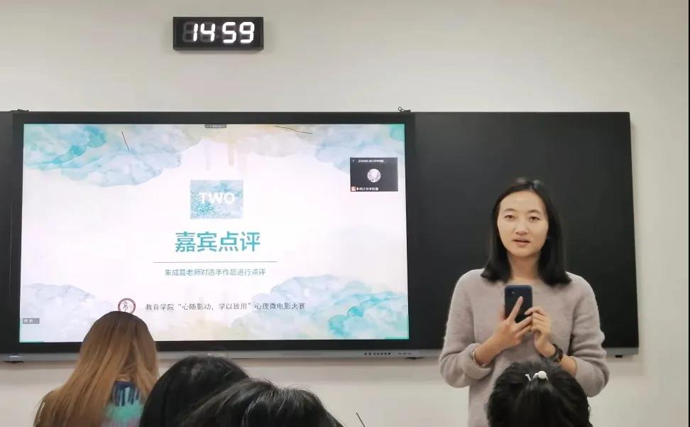微电影展播后,朱成晨老师对各参赛作品进行点评,并提出了自己的建议。朱老师表示,心理微电影大赛不仅仅是一个心理剧活动,更是同学之间交流的好机会。希望通过这次活动,让各位同学更好地了解彼此,增进友谊。朱老师对本次心理微电影活动表达了高度赞扬,并希望通过本次活动增进同学们对心理知识的了解,改善同学们的心理状态。
