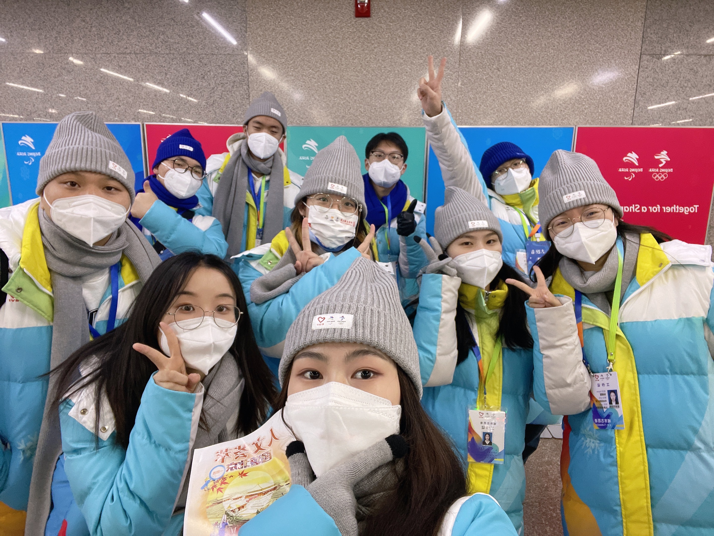 冬奥结束,虽然每天的工作内容都一样,但在北京颁奖广场的每一天都令我难忘,都是我的冬奥记忆。记得有一天,颁奖仪式比较多,同时临近冬奥闭幕式,道路交通管制,来接我们回酒店的大巴晚点了一个小时,我们在等待时,举起荧光棒和闪光灯放声歌唱,以此来缓解压抑的气氛,冲散劳累的神情——从《荷塘月色》到《别看我只是一只羊》,从《北京欢迎你》到《一起向未来》,甚至到了车上歌声仍未停止,带队的刘老师给我们录下了这一时刻。我也忘了是什么时候停止歌唱的,应该是在我们疲惫的时候,应该是在我们感动的时候。也就在这时候,我感受到了我们青年志愿者那股发自真心的热情。