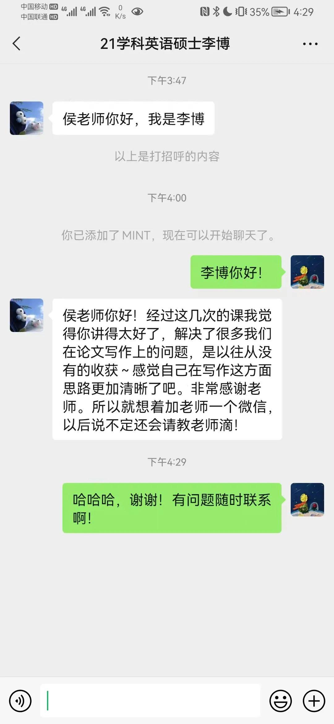 在《音乐教学设计与实施》课中,崔老师对我们进行手把手的教学,每位同学都能在教案、ppt方面得到老师的亲自指导,对于同学们出现的各种各样的问题,崔老师也能够及时地给出方案进行解答。在崔老师的这门课程当中,我更加了解了教案以及ppt的制作要点,也逐渐明白对于不同年龄段的员工该如何进行说课,不管是在语言还是在语调上,都应该根据员工的情况进行变化。虽然疫情阻挡住了我们见面的脚步,但我相信,疫情没有办法阻挡住我们学习的脚步,希望疫情能够早些结束,与同学和老师在校园相见!