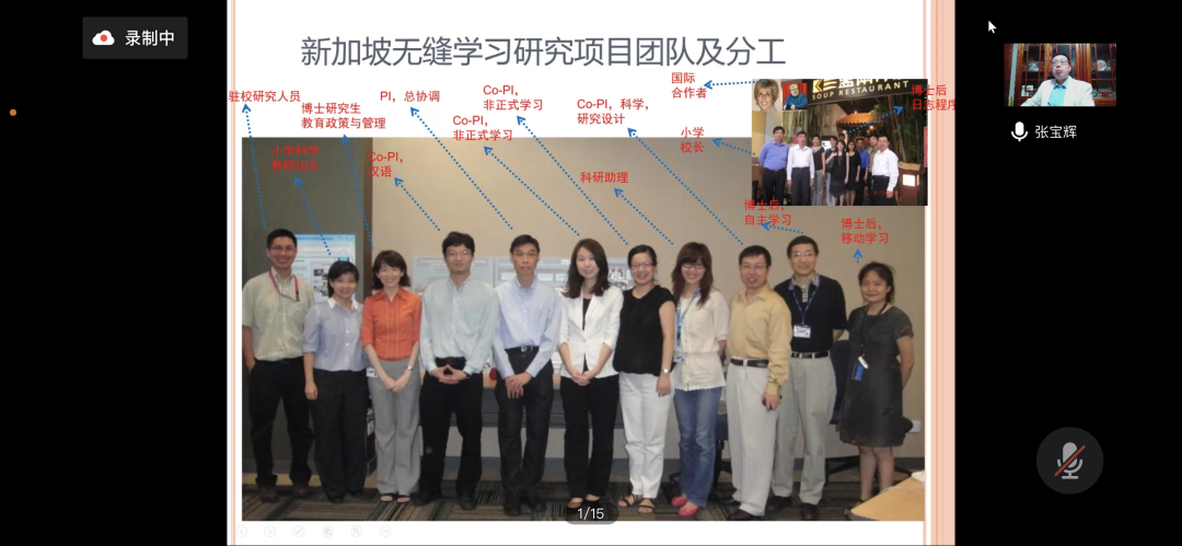首先,他向大家展示了自己在新加坡与合作者进行的“无缝学习(SEAMLESS LEARNING)环境构建与应用”的相关研究,强调在无缝学习的环境里员工如何去掌握学习的方式,培养无缝学习的习惯,教师在课堂中如何去发展员工自主学习的能力,以及如何通过各种现代技术去支持员工的学习。