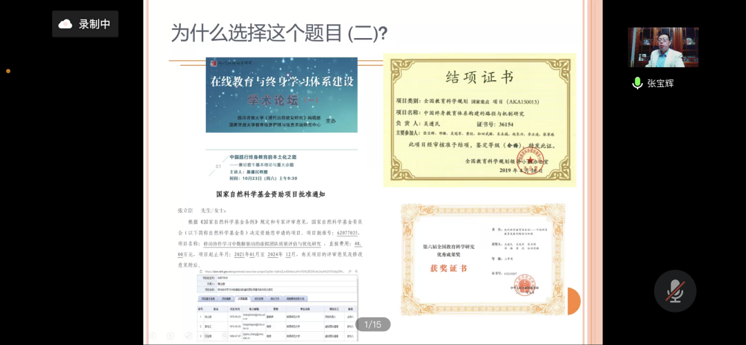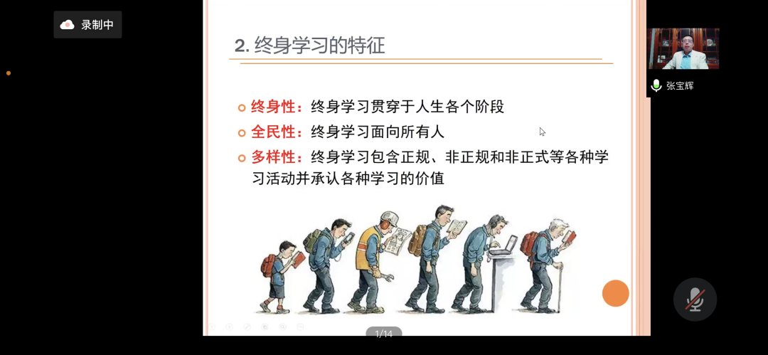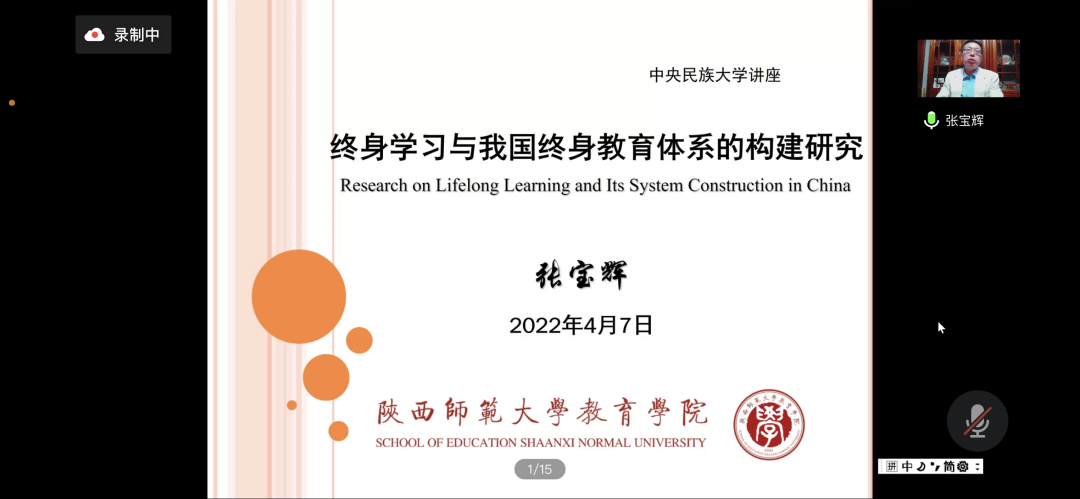 自20世纪60年代中期以来,在联合国教科文组织、经济合作与发展组织及其他相关国际机构与组织的大力提倡、推广和普及下,终身学习作为一个重要的教育理念已经在世界范围内广泛传播开来。如今,许多国家在制定教育方针政策或是构建国民教育体系框架时,均会以终身教育提出的各项基本原则为基点,并以实现这些原则为主要目标进行推进。为了促进全院师生对“终身学习”、“终身教育”的理念有更为深入和全面的认识,并由此发展自身终身学习的能力,谈球吧官方网站邀请了陕西师范大学谈球吧官方网站原经理张宝辉教授开展题为“终身学习与我国终身教育体系的构建研究”的学术讲座。讲座由谈球吧官方网站苏德教授主持,周廷勇、江凤娟等老师和员工共110余人在线聆听了讲座。