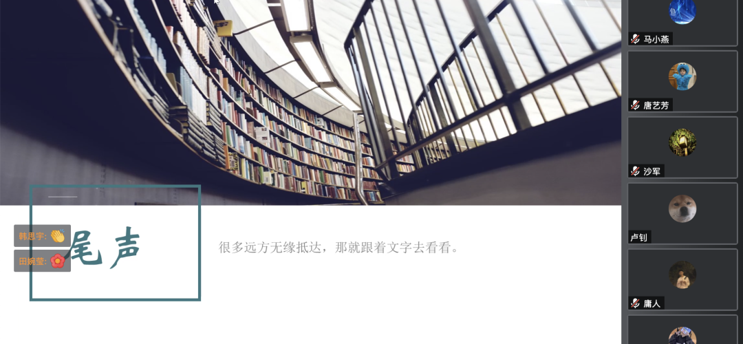 最终,本次云端读书会也在留言区里大家的一句句“再见”中落下帷幕,取得圆满成功!