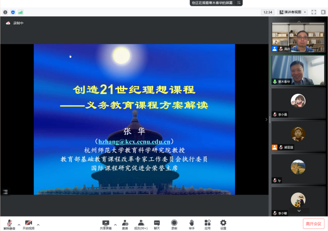 张华教授首先介绍了自己的学术经历,并呼吁各位师生能够多关注课程与教学领域的研究。