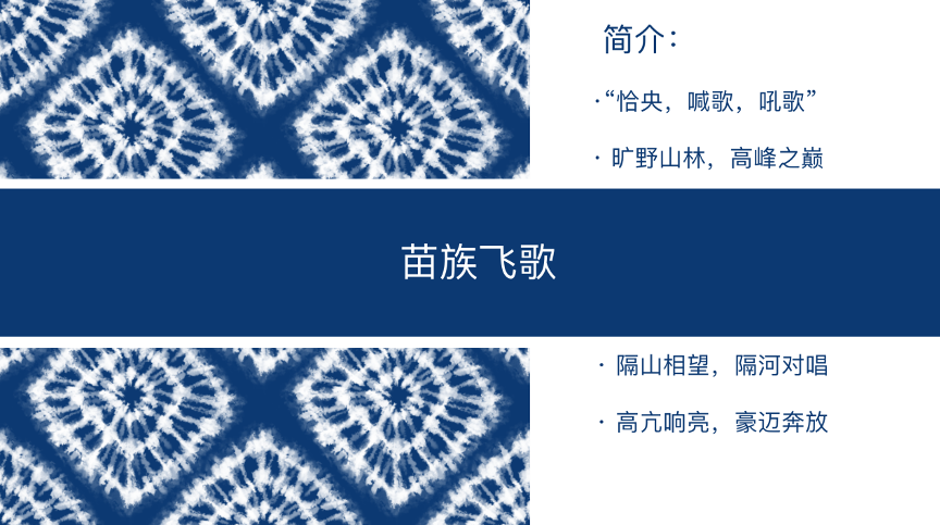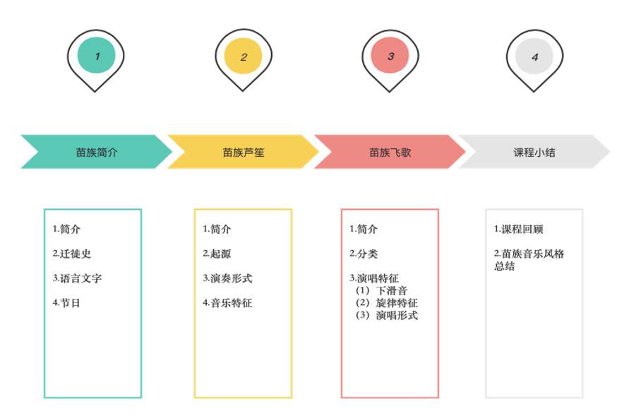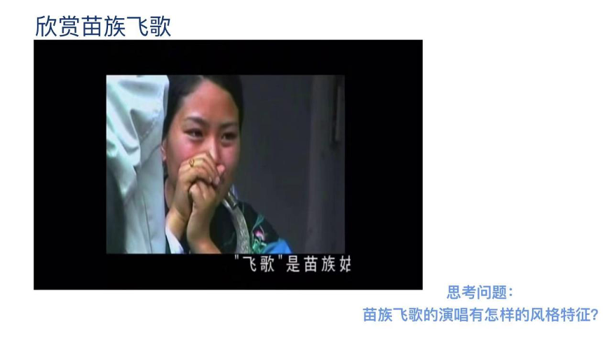 设计意图:苗族民歌是苗族音乐中必不可分的一部分,而飞歌是苗族人民最为喜爱与擅长的民歌类型。主要从飞歌的简介、分类进行简要概述,并通过视频播放及问题互动的方式帮助员工总结出苗族飞歌演唱特点。