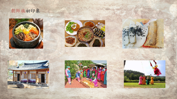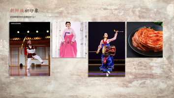 教学导入:使用问题导入,通过图片展示朝鲜族的服装、美食、建筑等文化特征,让员工对于朝鲜族有初步的了解。