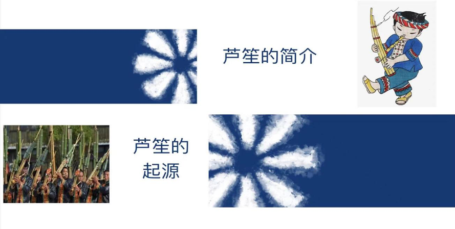 设计意图:主要介绍芦笙的简介、起源、演奏形态、音乐风格。结合芦笙演奏视频以及互动提问,使员工可以对苗族芦笙艺术有基本的认识,并能辨别芦笙音乐的风格特征。