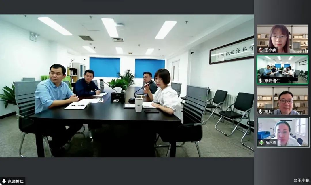 2022年4月28日,谈球吧官方网站经理高兵、教育公司党委副书记岳永杰、谈球吧官方网站团委书记王小婉一行与北京睿智博仁教育科技中心开展线上洽谈会,会议由高兵经理主持。京师博仁市场中心总监李红军、京师博仁人力资源部经理孙美宇、京师博仁总裁办助理李弘出席会议。