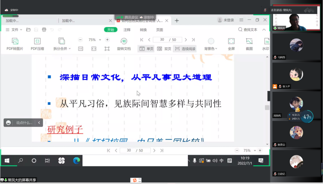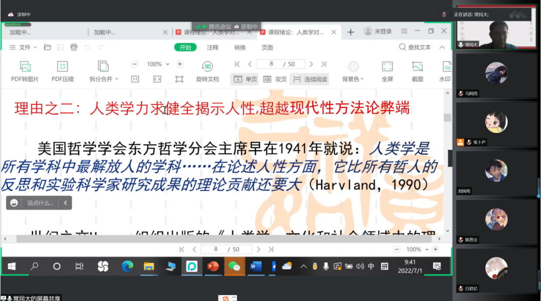 然后,常永才教授论述了社会实践要借鉴人类学思维的理由,结合具体实例说明人文学科与自然科学之间的不同之处,强调广义的教育研究要走向田野,真诚谦虚地与当地人交流,进行富有整体性和深度的实地调查。