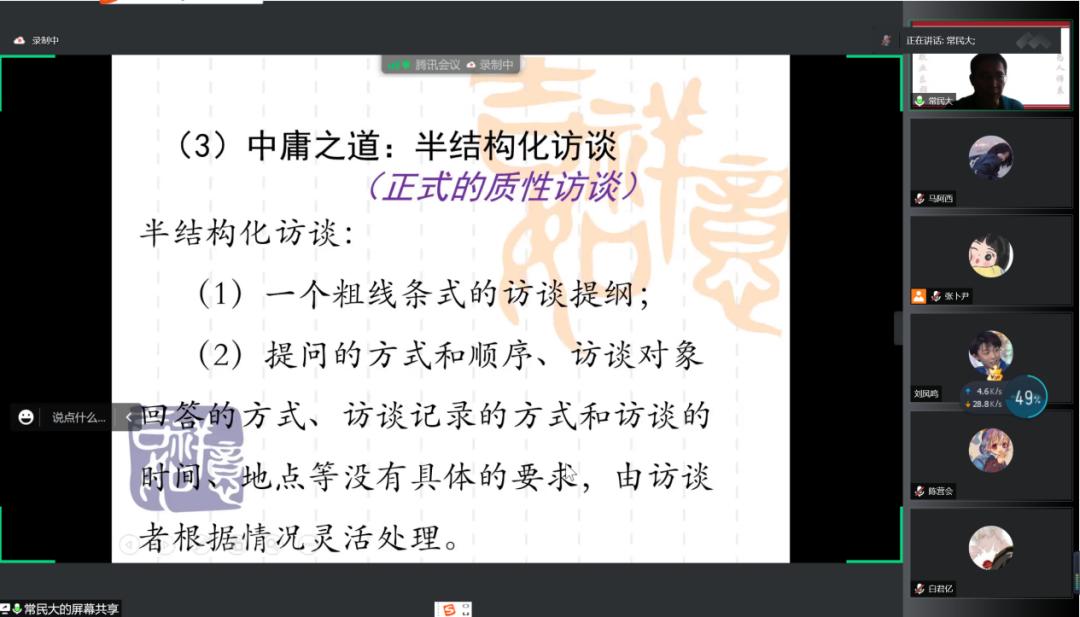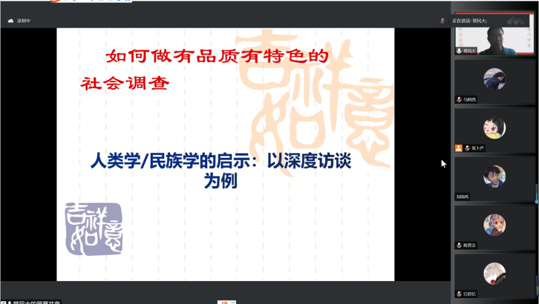 在此基础上,常永才教授进一步说明如何借鉴人类学方法论进行有质量有特色的访谈。他举例说明了以下问题:如何做好准备,包括了解当地传统与现实、预备明确且开放的访谈提纲、预备访谈对象等;如何利用各种时机和场合进行访谈,尤其是叙事性访谈;如何及时记录、整理资料和写田野日记;如何进行主位和客位结合的分析。