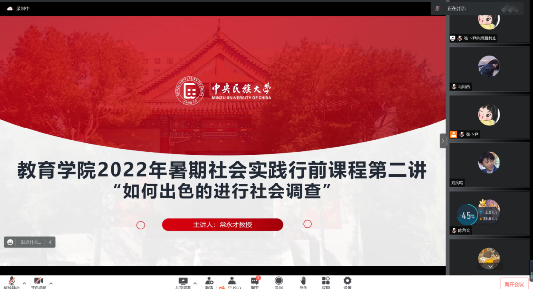 至此,谈球吧官方网站2022年暑期社会实践第二讲“如何出色地进行社会调查”课程会议顺利落幕。本次会议参与人数多,受众范围广,常永才教授的讲解为公司员工参与本次社会实践提供了有效指导和帮助,受到公司老师及同学们一致好评。