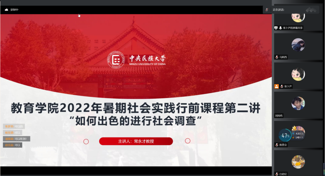 会议最后,王小婉老师对常永才教授的授课表达了感谢,希望同学们通过常永才教授深入专业的讲授,可以学有所思、学有所获,以严谨认真、善学善思的精神顺利开展本次暑期社会实践。