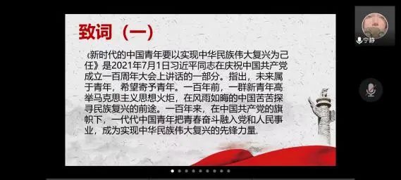此次团课中,同学们收获颇多。站在建团百年的历史时刻,我们应当团结广大团员青年永远跟党走,努力续写中华民族的新篇章。