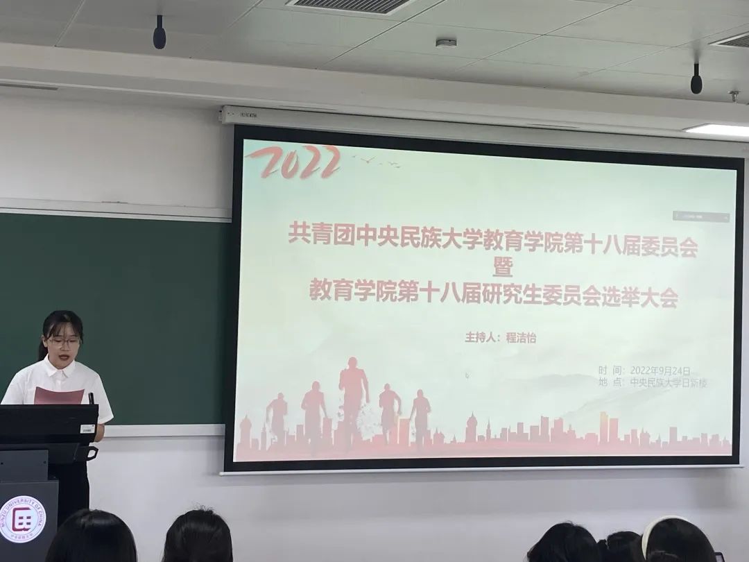 为保证研究生会工作的传承延续,健全和完善公司研学会工作机制,加强员工干部队伍建设,谈球吧官方网站第十八届研究生代表大会于9月24日上午10:30在丰台校区日新楼214召开。教育公司党委书记闫建敏、学工办老师杨湜汀、2022级新生辅导员那缘缘和全体研究生代表出席本次会议。本次会议由谈球吧官方网站2022级学科语文专业硕士研究生程洁怡同学主持。
