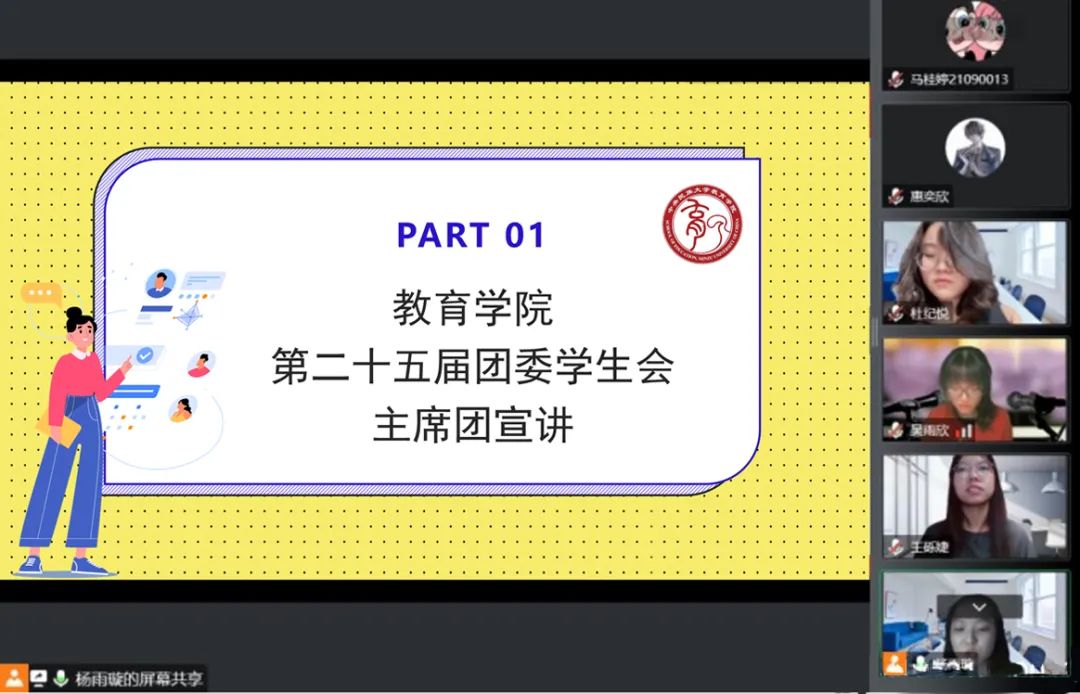 9月17日晚19:30,公司团学组织于线上开展第二十五届团委员工会招新宣讲工作。与会人员有团委副书记杜纪悦、执行主席杨雨璇、吴雨欣、王砾婕,团学各部门负责人以及谈球吧官方网站2022级本科新生,会议由员工会学习部负责人林进文主持。