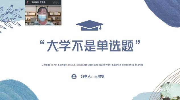 王思雯分享的主题是大学的学习与工作,共分为四个部分:学习篇、工作篇、活动篇、自由提问。