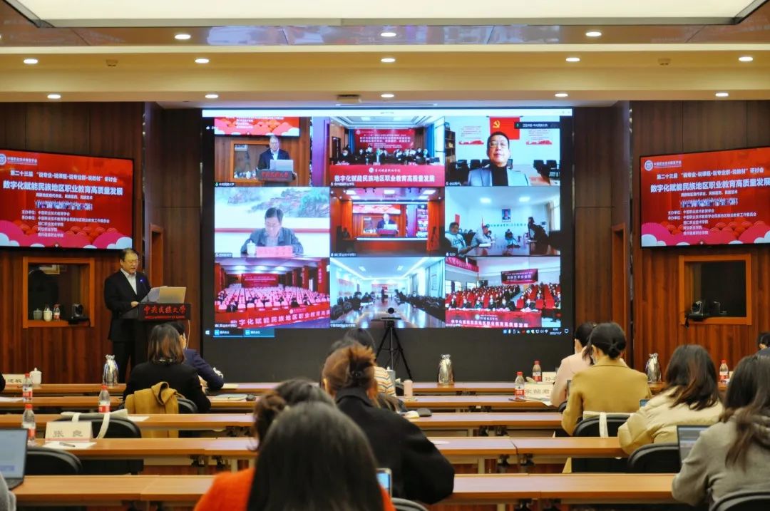 研讨会上,鲁昕会长作了题为“建设中国式现代化:民族地区职业教育大有作为”的主旨报告。报告围绕学习贯彻党的二十大精神,从“新目标新思路、新价值新表述、新标准新场景”三个方面,提出要提高站位,从为实现中国式现代化培养现代化人才、战略性人才的角度明确职业教育发展的新方位、新定位,切实服务于“共同富裕”“文化自信”“国家安全教育”等国家重大战略,为进一步推进职业教育高质量发展指明了根本方向、提供了根本遵循。鲁昕会长强调,党的二十大提出以中国式现代化全面推进中华民族伟大复兴,民族地区是中国式现代化的重要阵地,民族地区职业教育意义重大,在中国式现代化建设中大有可为、大有作为。要加强人才队伍建设、提高人才培养能力,强化集聚创新人才的特色载体、深化人才发展体制机制改革,加强组织保障、狠抓工作落实,切实推进民族地区职业教育高质量发展。