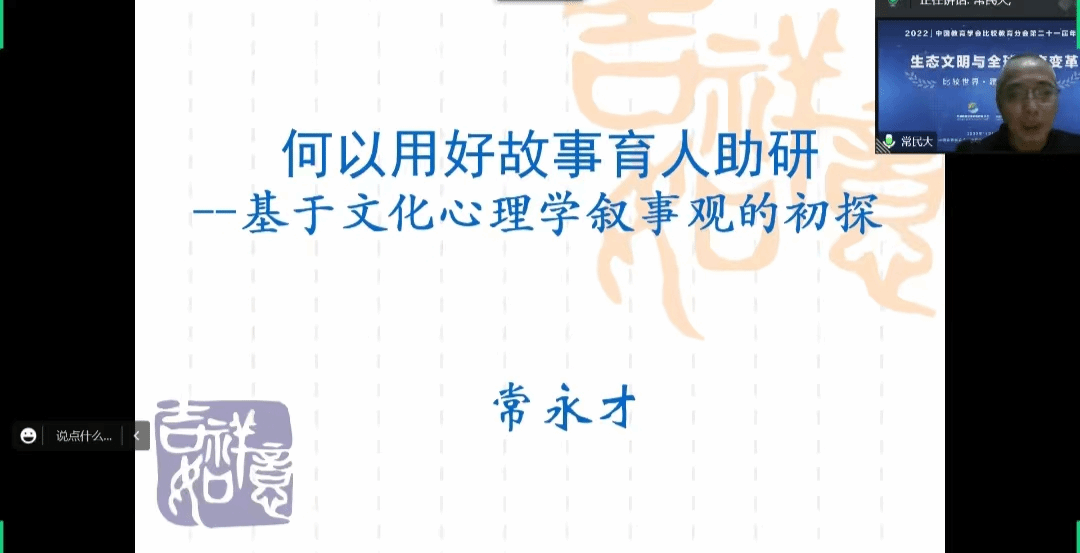 2022年12月2日19:00,“中央民大教育大讲堂”系列学术讲座第十期活动在腾讯会议线上进行。本次讲座邀请到谈球吧官方网站常永才教授为全体师生作题为 《何以用好故事育人助研——基于文化心理学叙事观的初探》的讲座。本次讲座由岳永杰教授主持,线上共计两百余人参加了此次讲座。