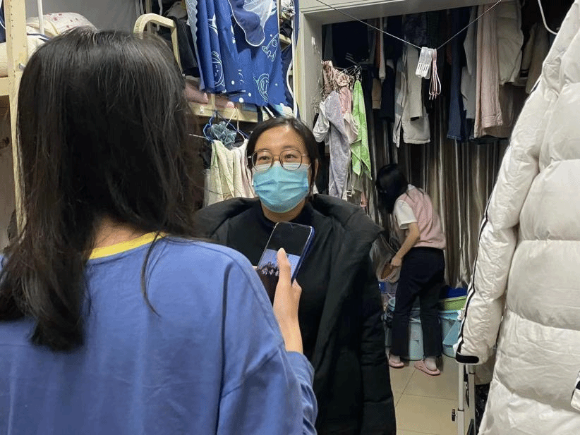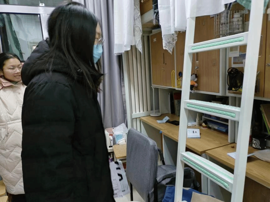 江凤娟老师对同学们宿舍安全情况进行检查