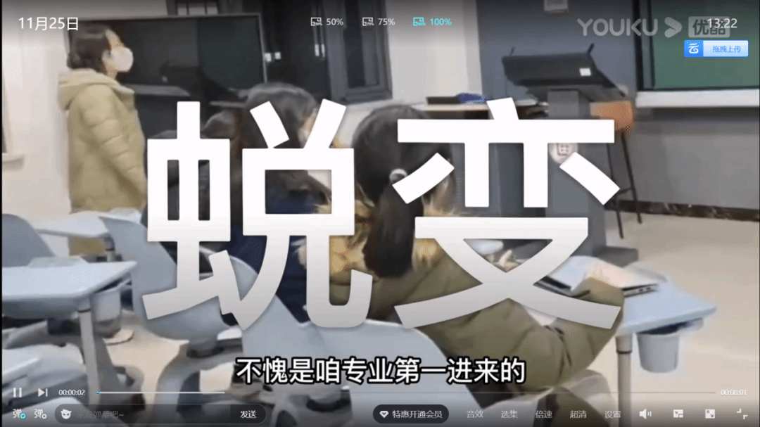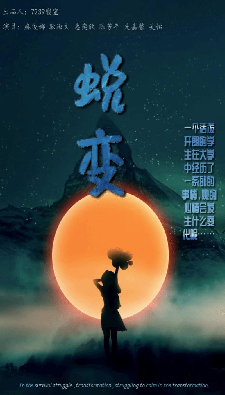 第一部展播的微电影是《蜕变》,本片讲述了女主人公刚进入大学时面临的一个个挑战:学习方式的转变导致成绩下降;生活与学习调节不当造成各种失误……她迷茫困惑,但在家人和朋友的帮助下最终完成蜕变。