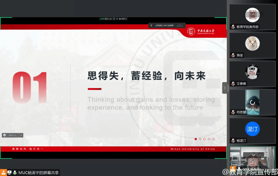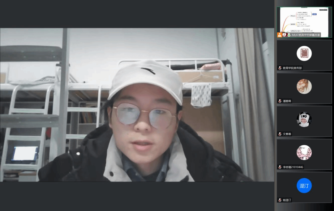 2023年2月17日晚7点30分,21级教育学班依托腾讯会议平台召开“你好,新学期”2023春季学期第一次班会。班主任朱成晨、辅导员杨湜汀老师及教育学班全体同学参与本次会议,会议由班级团支书杨涛宇同学主持。