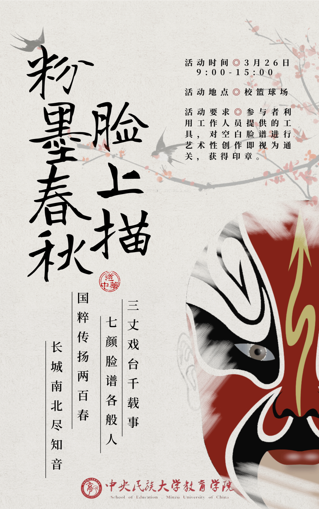 活动要求:参与者利用工作人员提供的工具,对空白脸谱进行艺术性创作即视为通过。