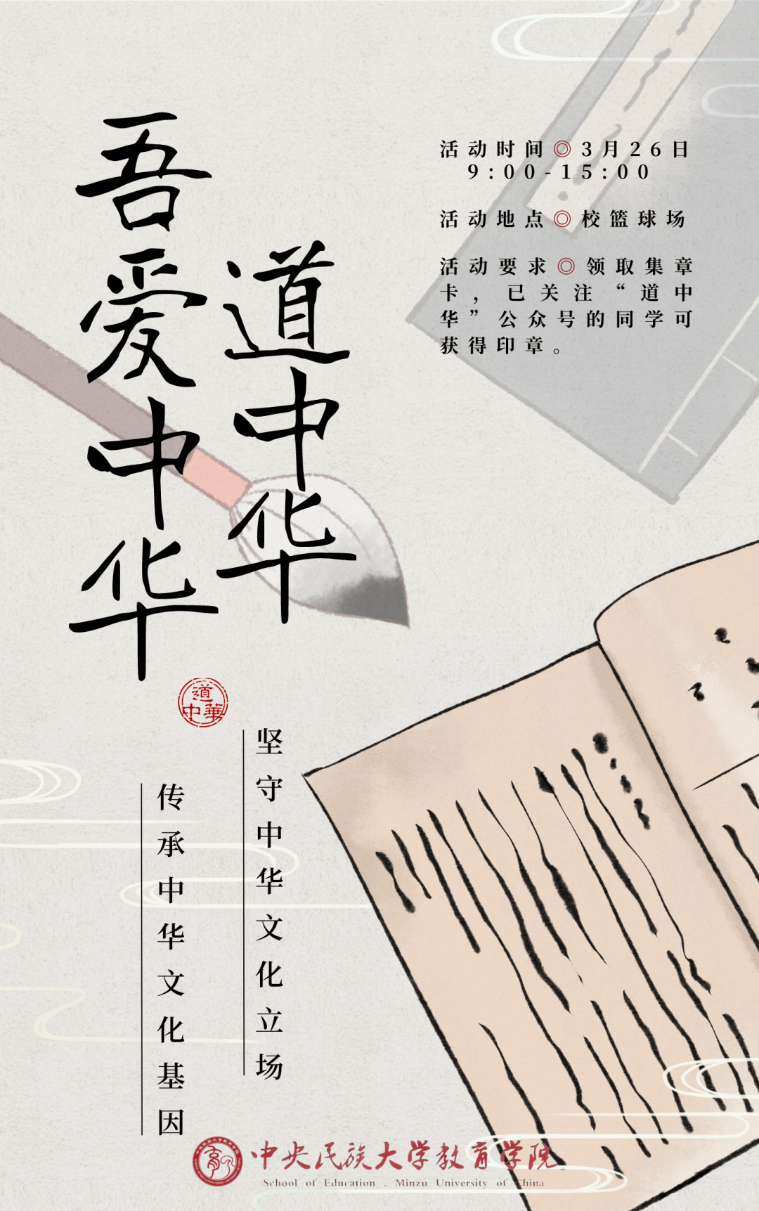 乘逸兴,赏雅事,宣心中语,铸中华魂。在当代共道中华,宣扬传统文化,是每一个人的使命与职责。以笔写下自己道中华的宣言,激励大家增强文化自信、根植精神动力,弘扬民族传统美德,加强思想道德建设,铸牢中华民族共同体意识。