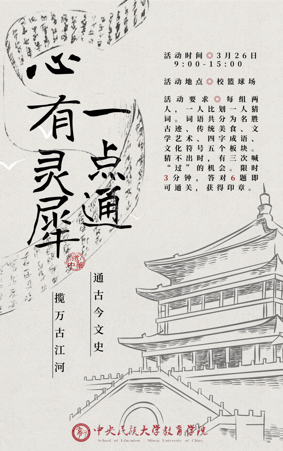 通古今文史,揽万古江河,在悠悠文明岁月里与茫茫历史长河中,中华民族用自己的智慧浇灌了贫瘠的土壤。访名胜古迹、品传统美食、学学艺术、讲四字成语、传文化符号……通过趣味活动,进一步加强自身修养、自觉做中华优秀传统文化的学习者、传承者、践行者、发扬者。