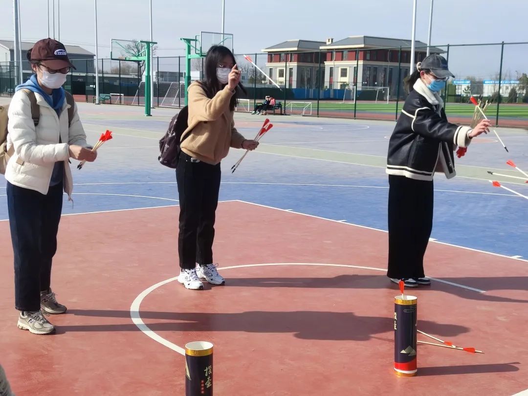 此关任务原定为站在距投壶2.5米处掷入壶中2支箭,但在活动过程中,由于规则对于初次接触该游戏的同学难度过大,遂适当调整了壶的放置距离。通过这一关,同学们在一次次的尝试中锻炼了自己的专注力、控制力和手眼协调能力,愉悦身心的同时,也传承了中华传统游戏文化。