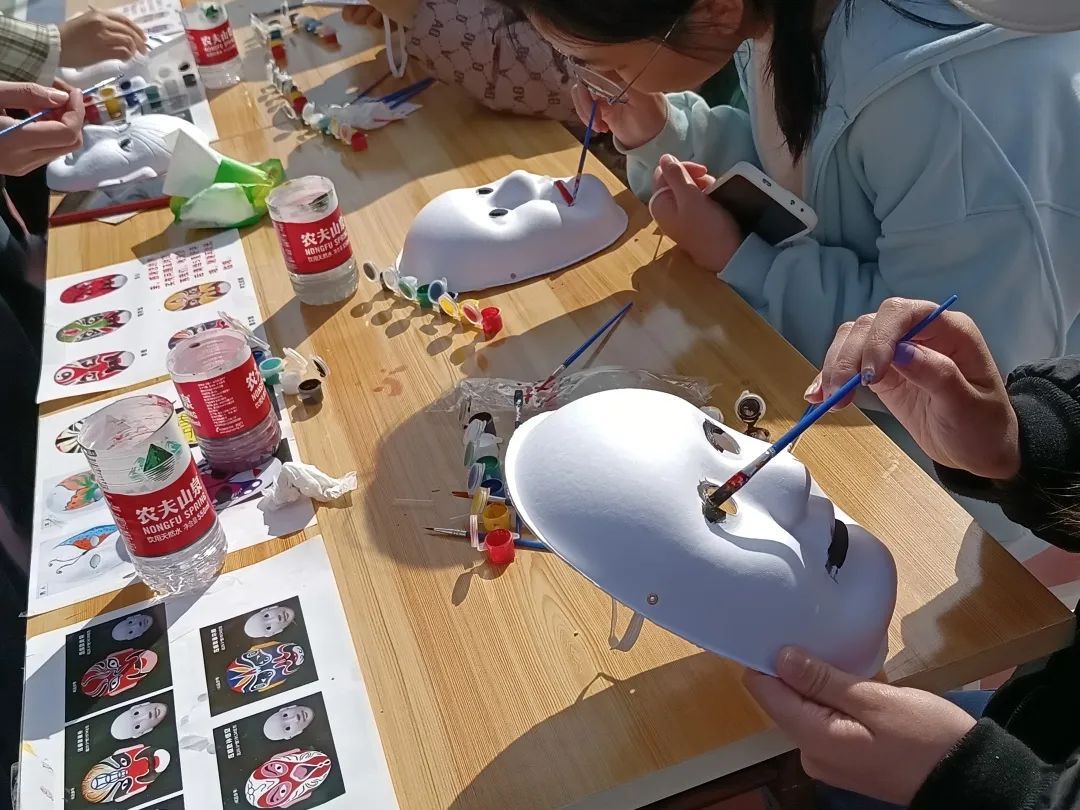 在这一关,同学们需要用颜料对空白脸谱进行艺术性创作,在本次活动中受到了极大欢迎。同学们纷纷挑选自己喜欢的脸谱形状,用颜料绘制京剧角色或者自行创作,绘制出各具特色、独有趣味的脸谱。该活动希望同学们在自主艺术创作中,感受并传承我国独特的戏曲文化。