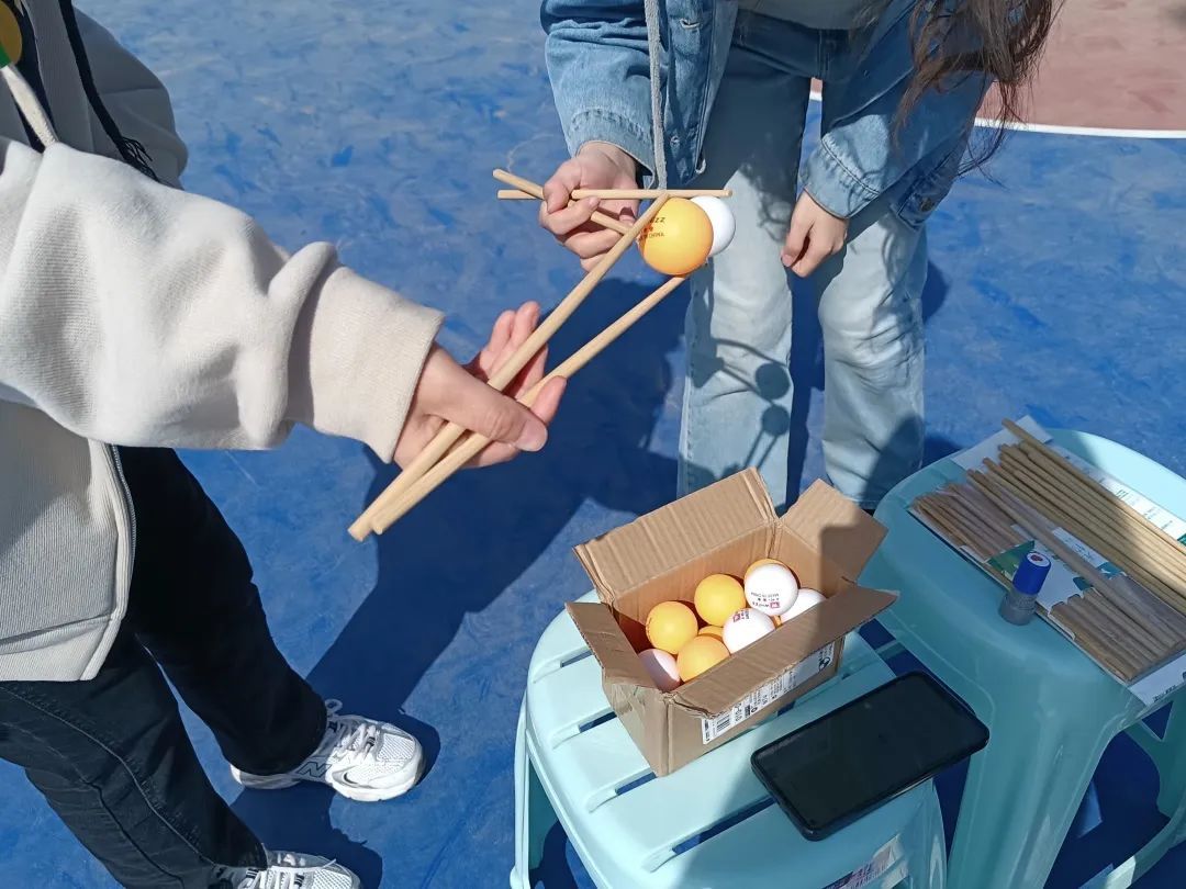 此关任务为用单手执筷夹起一枚乒乓球,放进5米外的纸杯中。此关考验了同学们的平衡能力,通过传统文化符号与现代体育项目之间的碰撞,激起绚烂的文明火花。活动中,同学们“笨拙”地使用、小心地“呵护”,更是在领略筷子的丰富文化内涵的同时,感受其历久弥香的文化气息。