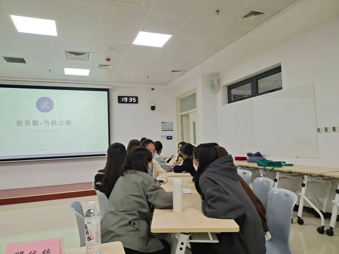 接下来,由主持人宣读比赛规则。本次比赛共分必答题、抢答题和风险题三个环节。第一环节为必答题-小试牛刀,题型为单选题、多选题和判断题,赛前各队伍通过抽签的形式确定了答题顺序。经过一番轮流比拼,本科教育学班、学硕班各队成员全部答对,赢得开门红。