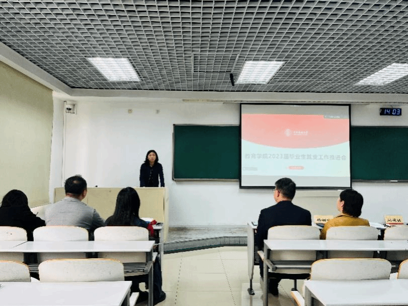 为学习贯彻落实党中央、国务院 “稳就业”“保就业”决策部署,引导毕业生树立正确就业观念,推进2023届毕业生就业工作,2023年4月20日下午2点,谈球吧官方网站于海淀校区文东304召开2023届毕业生就业工作推进会。教育公司党委书记闫建敏,党委副书记、经理高兵,副经理夏仕武,员工就业工作处杨新宇,2019级教育学本科生班主任周廷勇,2021级教育学二学位本科生班主任余红玉,2021级教育硕士辅导员张良,2022级新生辅导员那缘缘出席会议,全体2023届毕业生通过线上线下相结合形式参会。本次会议由辅导员杨湜汀主持。