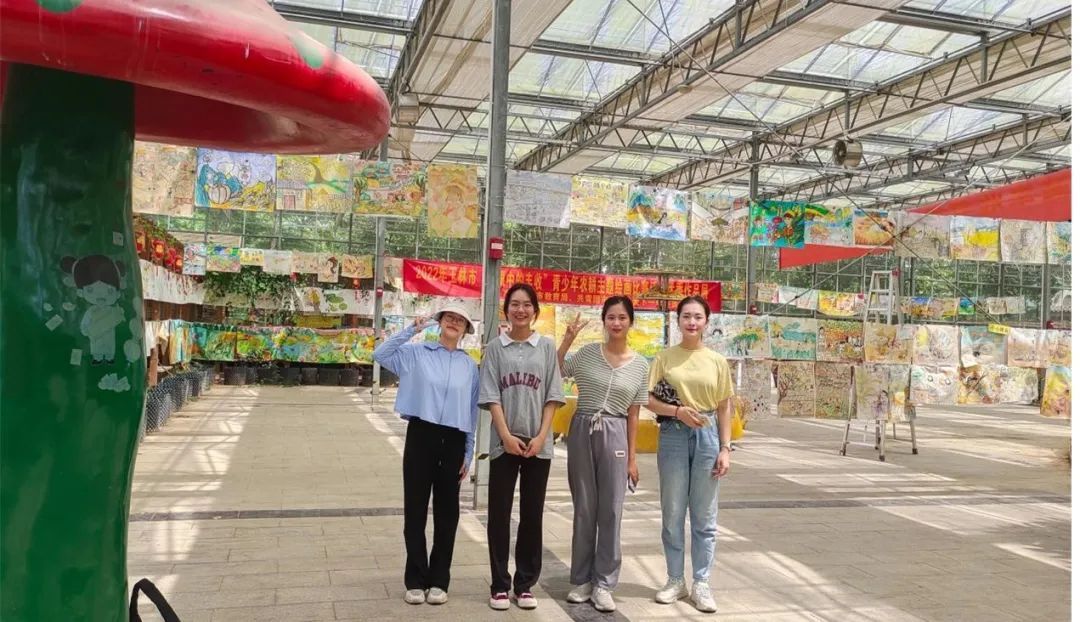 (实践团成员在五彩田园主题画展前合影)