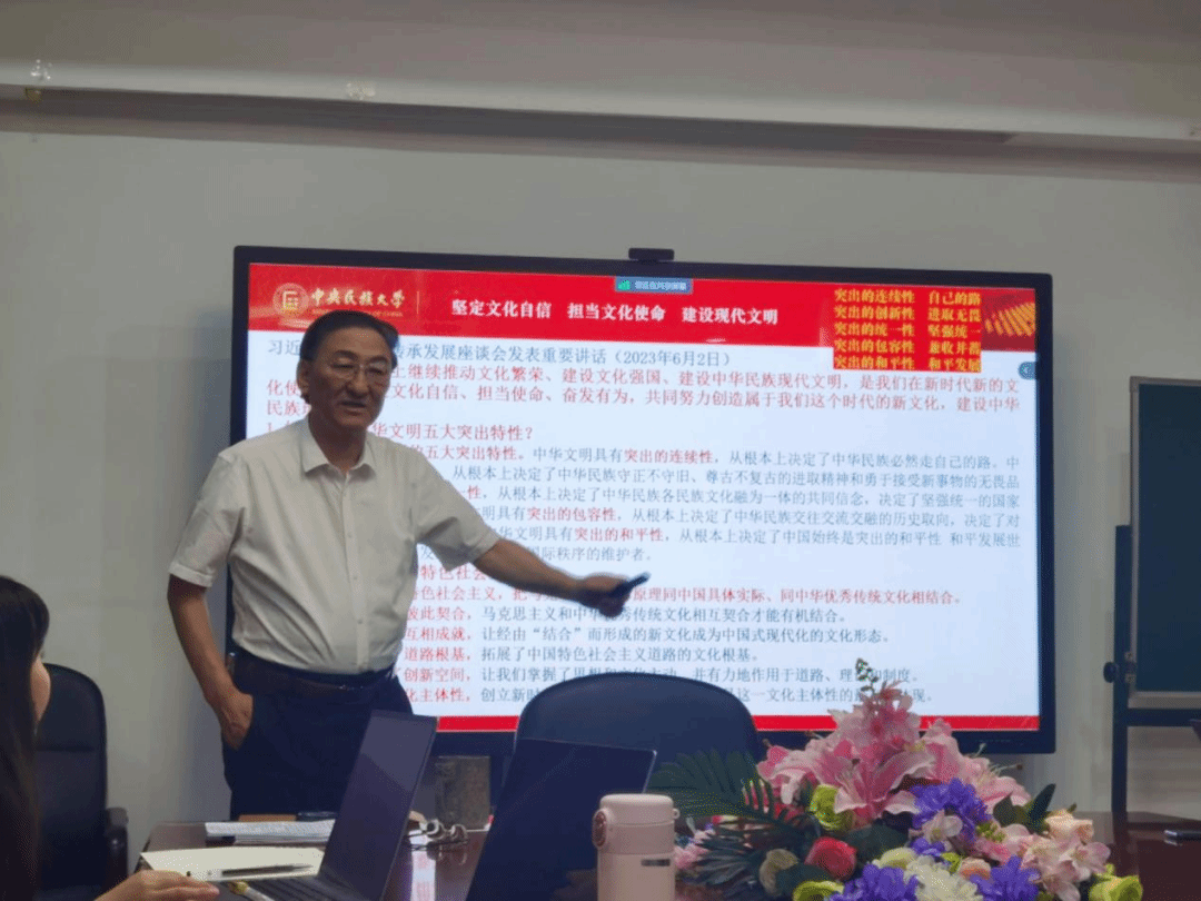 本次学术沙龙的主题是《教育强国建设背景下民族高校教育团队建设之思考》,苏德教授从学习习近平总书记在三次会议上的重要讲话精神入手,阐述了教育强国建设背景下民族(地区)高校教育团队建设的挑战与思路、现状与进路、实践探索与经验、教学实践与创新。