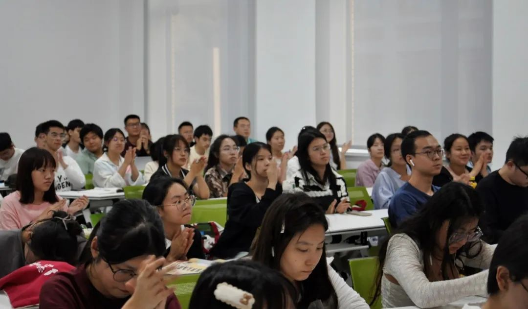 首先,副经理袁梅分析了“内卷”和“躺平”现象形成的原因以及二者之间的联系。她指出,同学们应明晰高中与本科阶段的差异,做时间的支配者——给自己沉淀思考的时间,做自由的人。