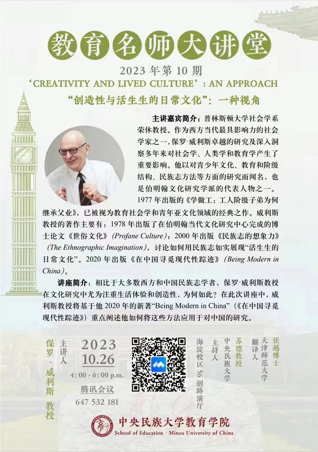 教育名师大讲堂预告|2023年第10期《“创造性与活生生的日常文化”:一种视角》
