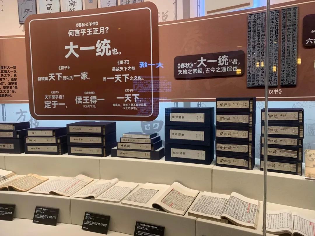 “铸牢中华民族共同体意识文物古籍展”分为“大一统”“大交融”“大团结”三个部分,从历史、文化、经济等多个角度,展现了中华文明延续不断的历史基因、中华民族凝聚不散的历史密码和中华民族大团结的深邃思想与丰富实践。头顶古星空图,脚踏中华文明之河,畅游在1500余件文物古籍中,同学们深入了解波澜壮阔的中华民族共同体形成发展史,聆听各民族交往交流交融的鲜活故事,深刻领略博大精深的中华优秀传统文化。