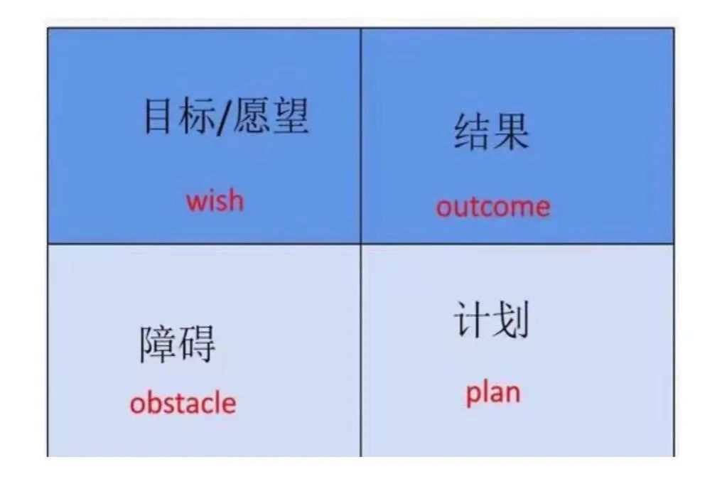 WOOP思维模型是由加布里埃尔·厄廷根教授所提出的一种心理学模型,厄廷根教授将“心理对比”和“执行意图”结合起来形成了帮助目标实现的WOOP思维模型。WOOP思维模型由英文单词Wish、Outcome、Obstacle、Plan四大步骤组成:即明确目标、想象结果、思考障碍、制定计划。