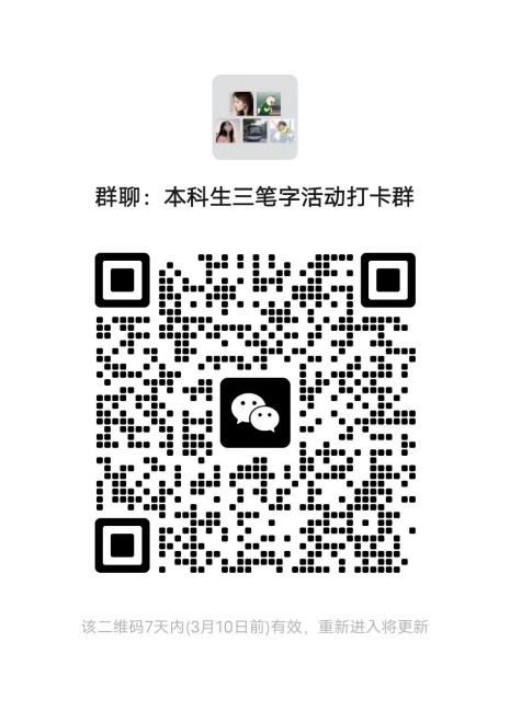 报名后请扫码加入活动群(本科生、研究生分别进入对应群聊,填写问卷星并入活动群方视为报名成功)