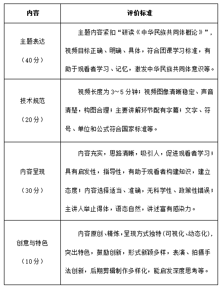 可以参考往期“青年大学习”网上主题团课形式,拍摄围绕《中华民族共同体概论》教材的微团课视频,视频时长为3~5分钟,视频格式为mp4或mov等主流视频格式,视频清晰,画面稳定。