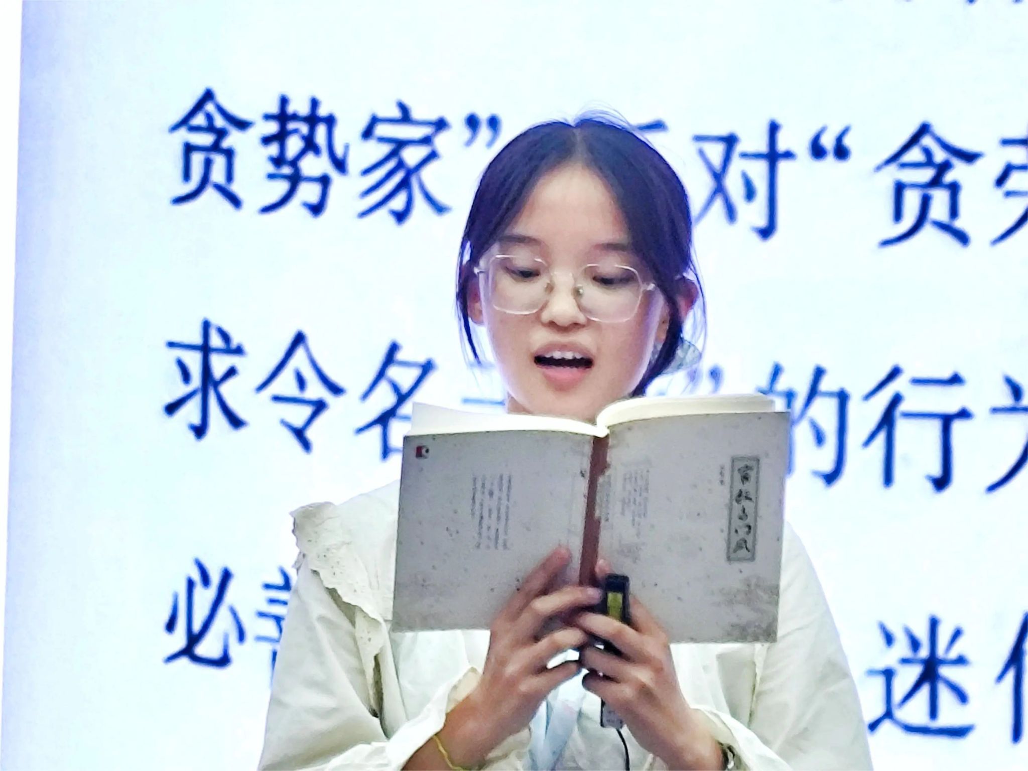 来自法公司、新闻与传播公司、外国语公司、中国少数民族语言文学公司、谈球吧官方网站的王君、潘文静、王嘉悦、孙平、林家馨、王舒敏、单佳宁、罗璇共八位同学,通过经典片段诵读、体验感悟分享等多种形式,将大家带入共读共享的阅读氛围,引发现场观众的深度思考与共鸣。他们分别结合自己的思考与感悟对《乡土中国》《万古江河》《美的历程》等多部经典进行解读与分享,从专业角度阐述了思维导图对深度阅读的帮助,现场互动氛围热烈。
