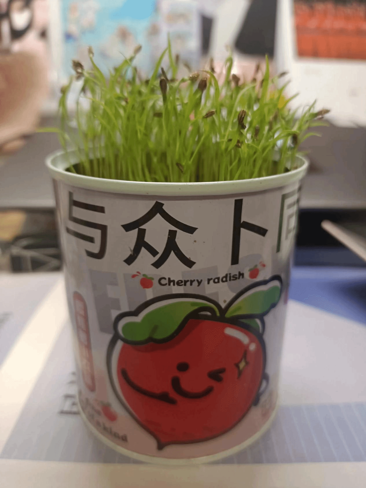 不知不觉到了最后一次打卡,就我个人来说,其实在这个活动之前我也会自己养一些植物,觉得能够在忙碌或者有些模式化的生活中撕开一点我自己的口子透透气,把生活过成我自己独特的生活。这次活动觉得很特殊能够跟别的小伙伴一起看着一个植物长大,不再是“单打独斗”,小萝卜会在加倍的注视和关爱下长大的,虽然活动结束打卡了,但是依旧希望他能茁壮成长,不期盼长成参天大树,也要成为有生命力的小苗吧。